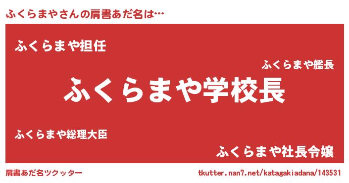 | ヘコむあだ名 | 『ふくらまや(苦笑)』『ふくもー』 |