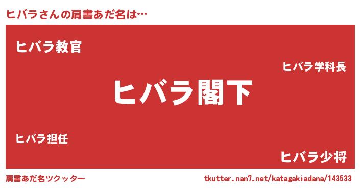 | ヒーロー風カッコイイあだ名 | 『ウルトラ戦士ヒバラ』『仮面ヒバダー』 |