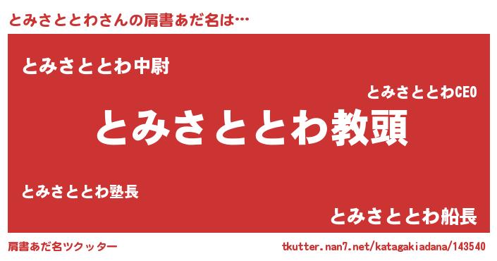 | 意味不明あだ名 | 『永久保存とみさととわ』 |