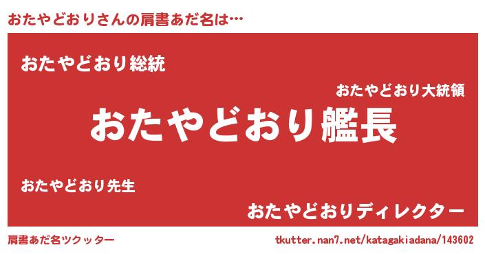 | 意味不明あだ名 | 『自称おたやどおり』 |