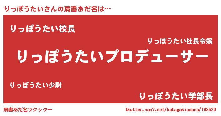 | 意味不明あだ名 | 『永久保存りっぽうたい』 |