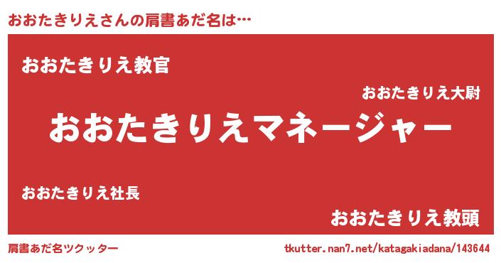 | ヒーロー風カッコイイあだ名 | 『仮面オオダー』『ネオオオタキリエ』 |
