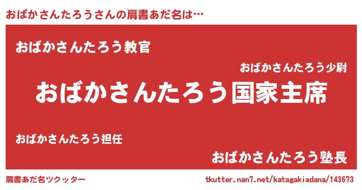 | 男性向けラノベタイトル風あだ名 | 『やはりおばかさんたろうの青春ラブコメはまちがっている 』 |