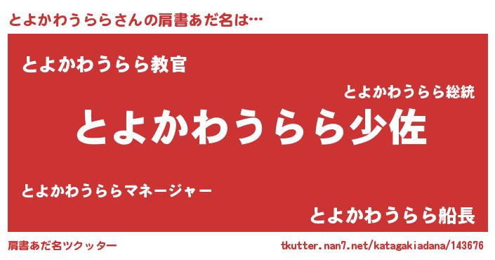 | 料理風あだ名 | 『とよかわうららごはん』 |
