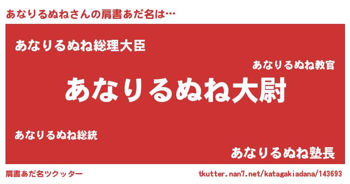 | 女子向けラノベタイトル風あだ名 | 『あなりるぬねの玉の輿計画!』 |