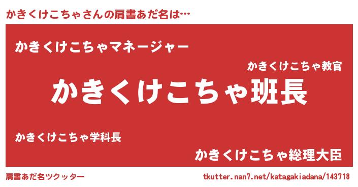 | 意味不明あだ名 | 『とにかく怪しいかきくけこちゃ』 |