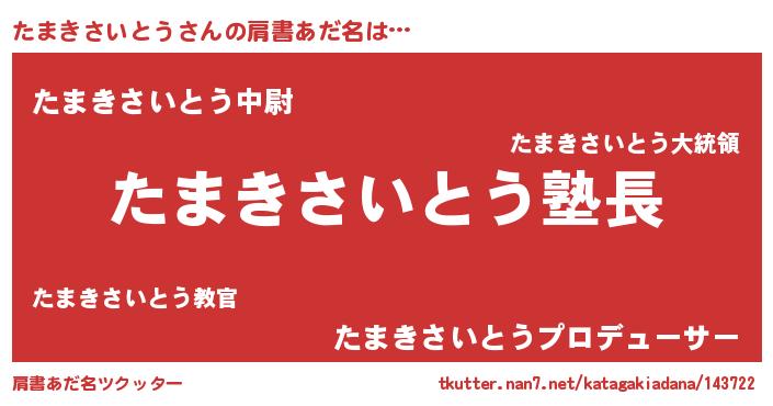 | 意味不明あだ名 | 『とにかく怪しいたまきさいとう』 |
