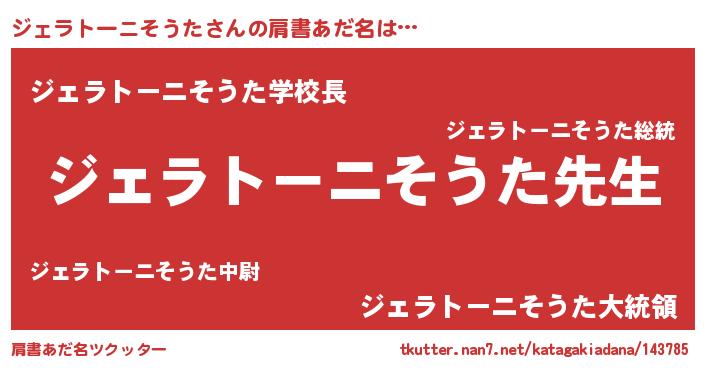| 伝説のあだ名 | 『古より伝わる吟遊詩人ジェラトーニそうた』 |