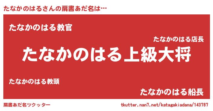 | 男性向けラノベタイトル風あだ名 | 『タナカノハルスレイヤー』 |