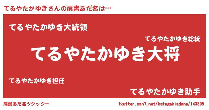 | 男性向けラノベタイトル風あだ名 | 『てるやたかゆき~年齢イコール彼女いない歴の魔法使い~』 |