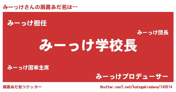 | ヒーロー風カッコイイあだ名 | 『天空の使者みーっけ』『ネオミーッケ』 |