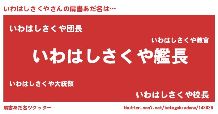 | 意味不明あだ名 | 『とにかく怪しいいわはしさくや』 |