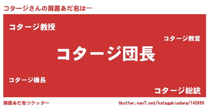 | 意味不明あだ名 | 『とにかく怪しいコタージ』 |