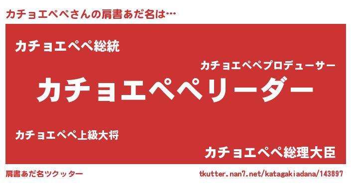 | 男性向けラノベタイトル風あだ名 | 『カチョエぺぺの嫁は女の子じゃないと思った?』 |