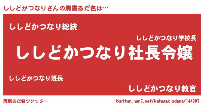 | ヒーロー風カッコイイあだ名 | 『スーパーシシドカツナリ』 |