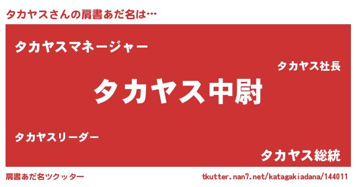 | ヘコむあだ名 | 『タカにゅー』『タカを』『なまこ酢』 |