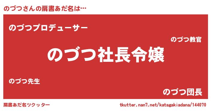 | 男性向けラノベタイトル風あだ名 | 『のづつの憂鬱』『はたらくのづつさま!』 |