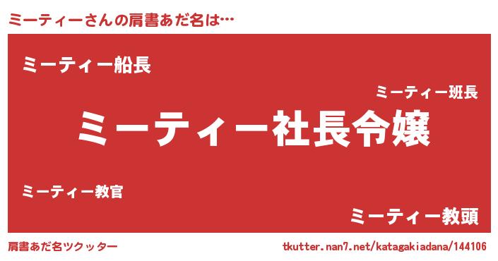 | 胡散臭い通販商品みたいなあだ名 | 『モテモテ間違いなし霊験あらたかなお札…その名も「ミーティー」』 |