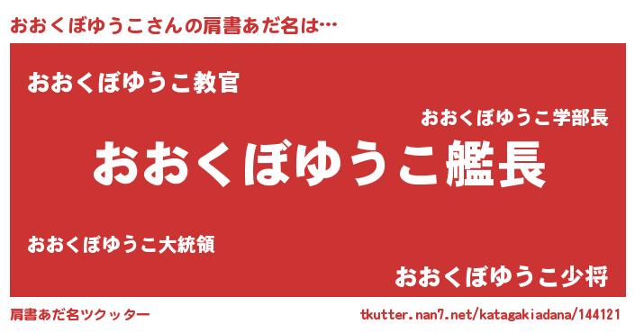 | 男性向けラノベタイトル風あだ名 | 『冴えないおおくぼゆうこの育てかた』 |