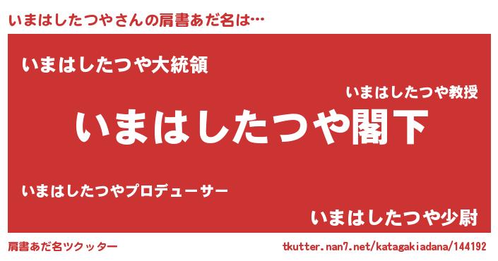 | 意味不明あだ名 | 『自称いまはしたつや』 |