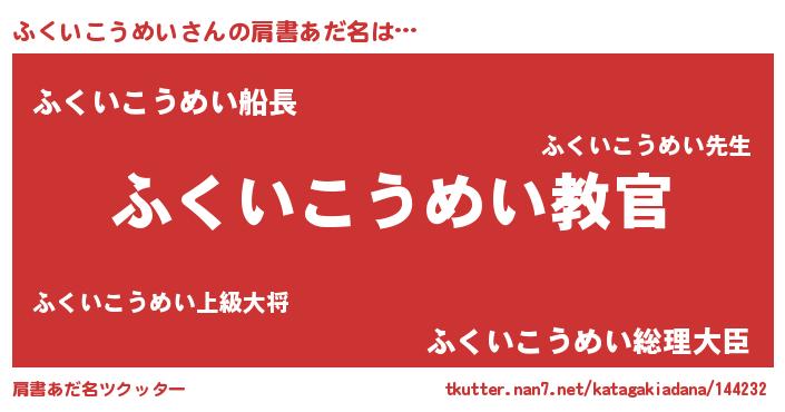 | 意味不明あだ名 | 『住所不定無職ふくいこうめい(9歳)』 |