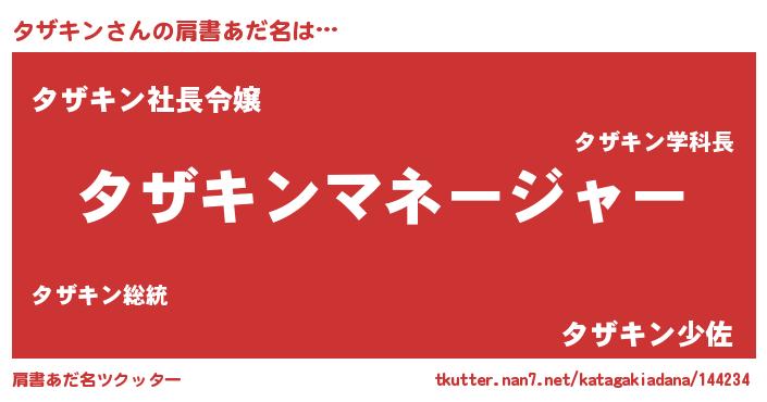 | ヒーロー風カッコイイあだ名 | 『スーパータザキン』『愛の使者タザキン』 |