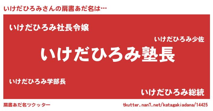 | ポケモン風あだ名 | 『ヒイケダヒロミ』『イケチュウ』 |