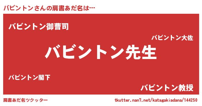 | 男性向けラノベタイトル風あだ名 | 『バビントンという概念が存在しない退屈な世界 』 |