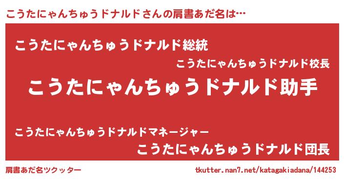 | 胡散臭い通販商品みたいなあだ名 | 『モンドセレクションを受賞したイリジウム磁石…その名も「こうたにゃんちゅうドナルド」』 |