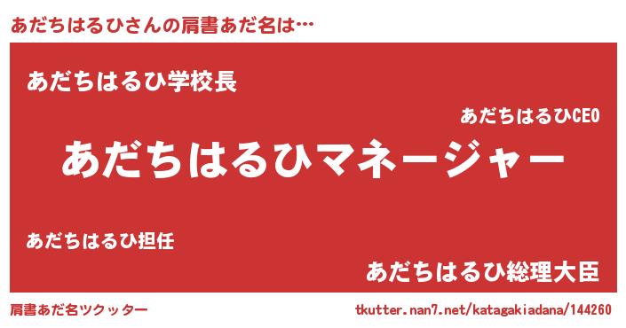 | 男性向けラノベタイトル風あだ名 | 『あだちはるひに滅ぼされるだけの簡単なお仕事です』 |