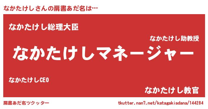 | 男性向けラノベタイトル風あだ名 | 『はたらくなかたけしさま!』 |