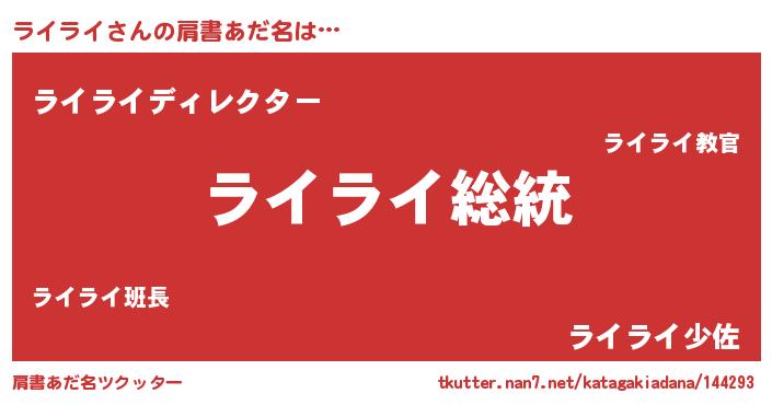 | 意味不明あだ名 | 『自称ライライ』『なめこ科ライライ属』 |