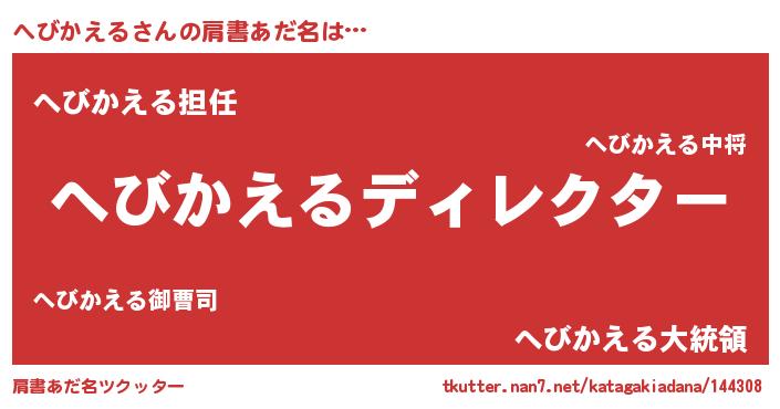 | 意味不明あだ名 | 『永久保存へびかえる』『自称へびかえる』 |