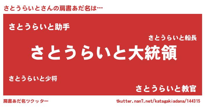 | 伝説のあだ名 | 『秘められし忍者さとうらいと』 |