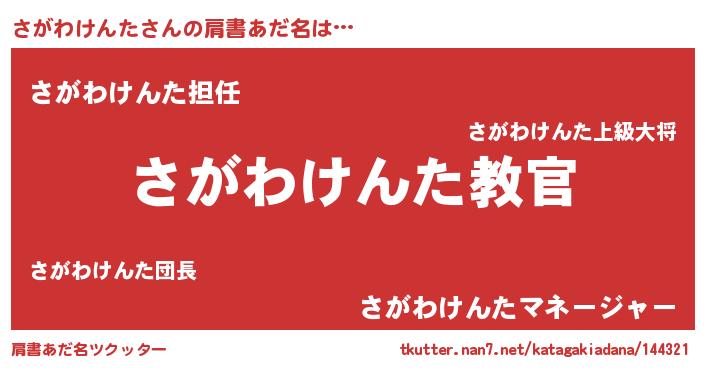 | ヘコむあだ名 | 『さがわけんた(遠い目)』『さがっぺ』 |