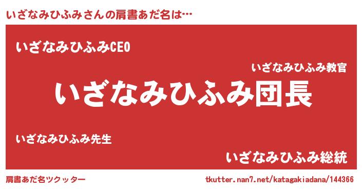 | 男性向けラノベタイトル風あだ名 | 『いざなみひふみの嫁は女の子じゃないと思った?』 |