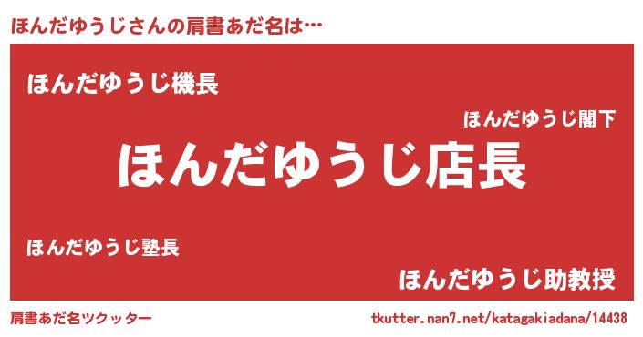 | 男性向けラノベタイトル風あだ名 | 『ほんだゆうじの憂鬱』 |
