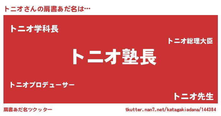 | 意味不明あだ名 | 『とにかく怪しいトニオ』『自称トニオ』 |