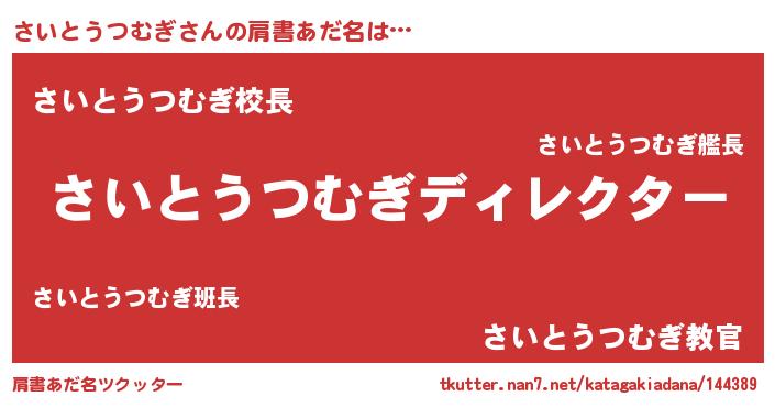 | 意味不明あだ名 | 『永久保存さいとうつむぎ』 |