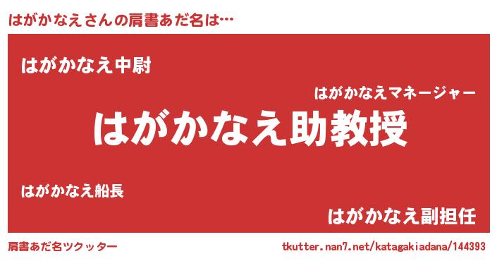 | ヘコむあだ名 | 『はがかなえ(笑)』『はがっ子』 |