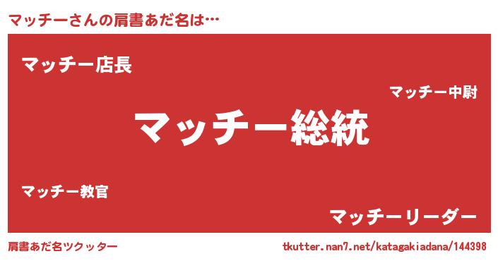 | ヒーロー風カッコイイあだ名 | 『ウルトラ戦士マッチー』『黄金騎士マッ』 |