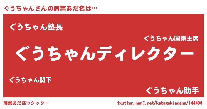 | ヒーロー風カッコイイあだ名 | 『銀牙騎士グウ』『友情の使者ぐうちゃん』 |