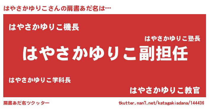 | ヘコむあだ名 | 『はやさかゆりこ(遠い目)』『はやぷりん』 |