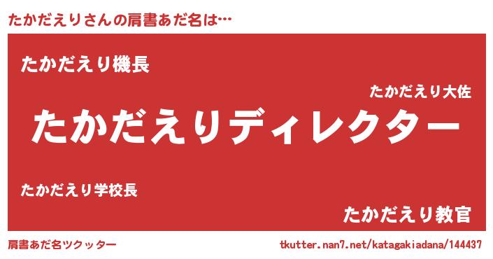 | ヒーロー風カッコイイあだ名 | 『仮面タカダー』『愛の使者たかだえり』 |