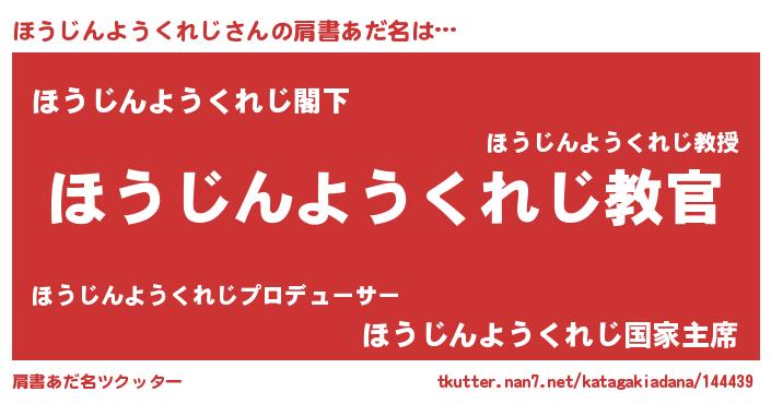 | 男性向けラノベタイトル風あだ名 | 『この素晴らしい世界にほうじんようくれじを!』 |
