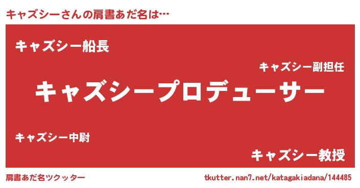 | 男性向けラノベタイトル風あだ名 | 『キャズシーに滅ぼされるだけの簡単なお仕事です』 |