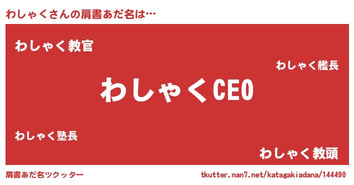| 男性向けラノベタイトル風あだ名 | 『わしゃくの憂鬱』『魔弾の王とわしゃく』 |