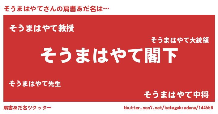 | 意味不明あだ名 | 『自称そうまはやて』 |