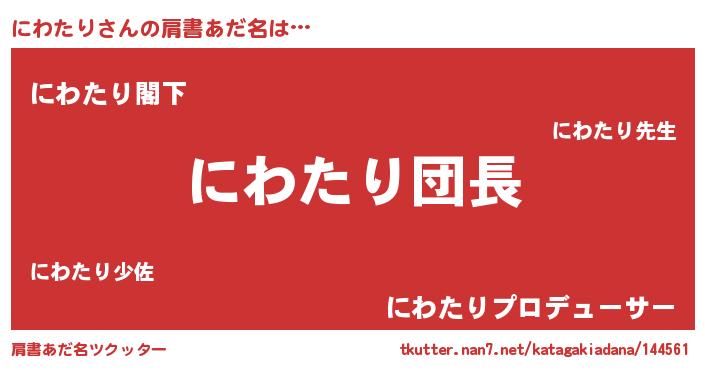 | 女子向けラノベタイトル風あだ名 | 『にわたりは平凡を望む』『闇のにわたり』 |