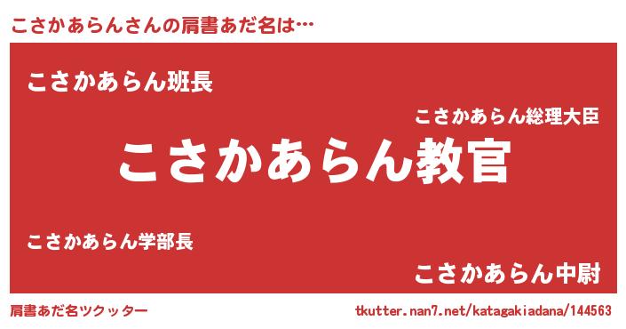 | 男性向けラノベタイトル風あだ名 | 『この素晴らしい世界にこさかあらんを!』 |